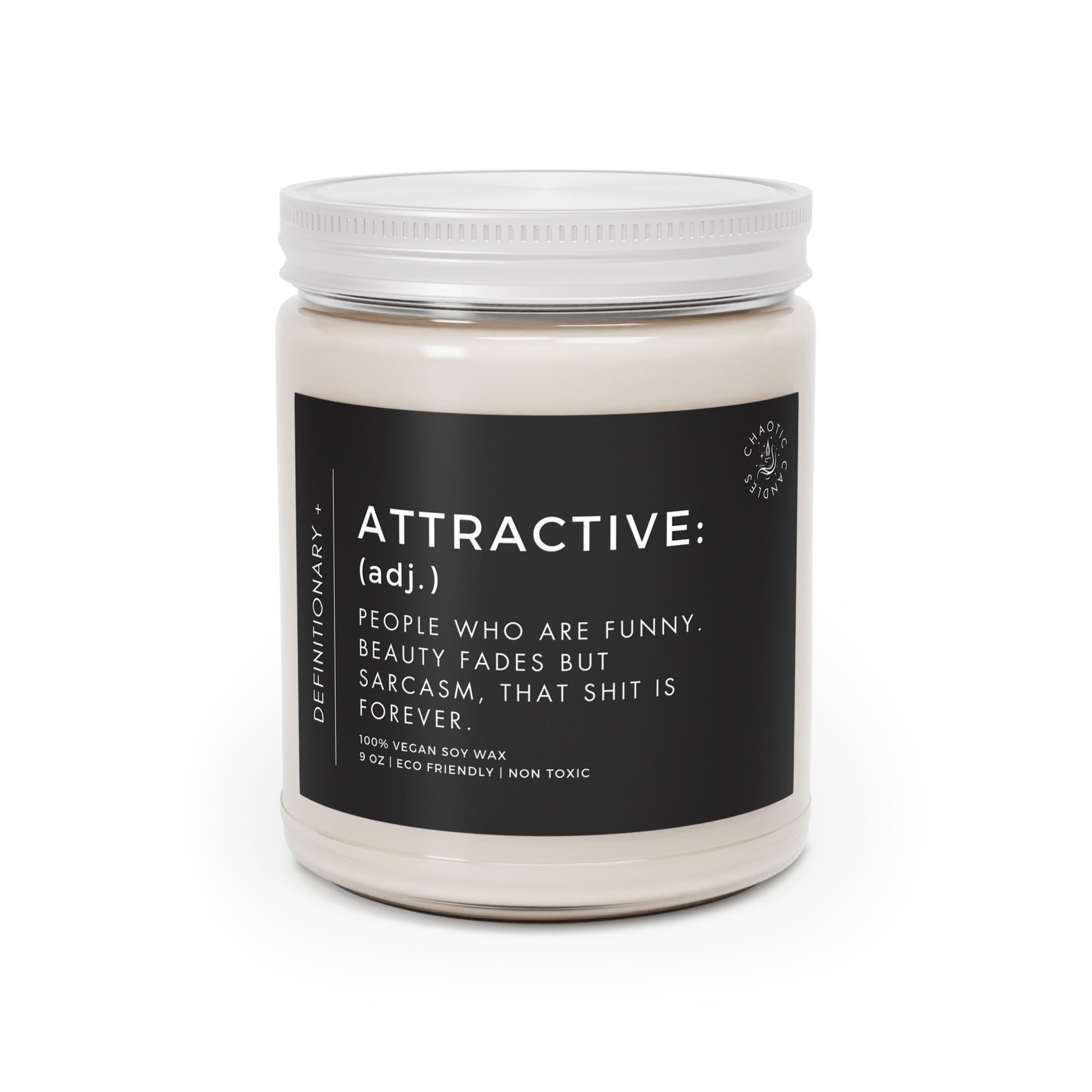 Introducing "Attractive" - the 9oz candle that celebrates the allure of wit and humor. Made from a premium natural soy wax blend, it embodies the essence of charm and irreverence. As the flame dances, immerse yourself in the captivating scent that encapsulates the essence of laughter and sarcasm. Choose between fragrances such as Vanilla Bean, Comfort Spice, Sea Breeze, Unscented, Fresh Balsam, Spiced Pumpkin Ginger, Pink Grapefruit and Eucalyptus Lavender Herb. Embrace the timeless appeal of those who are truly attractive - the ones who wield humor as their greatest asset. Let "Attractive" light up your space with the eternal glow of wit and charm.